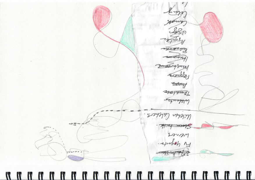 - Glue the grocery list to the page of your journal. You may wish to orient it upside down or sideways to help trick your brain into seeing marks not of words. Tip: allow the glue to dry well before beginning.